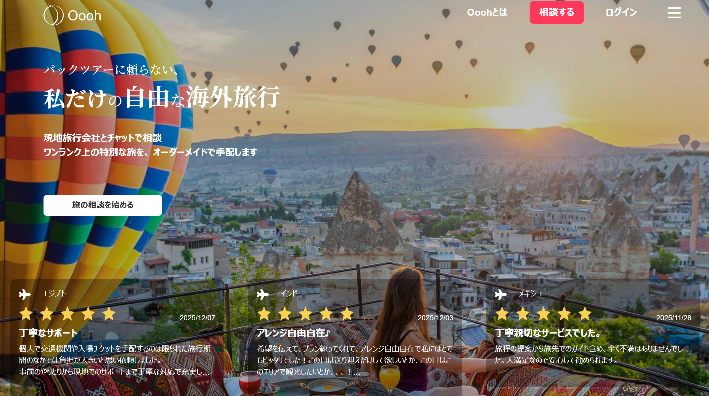 Oooh(オー)は、従来のパックツアーに頼らず、自分だけの自由で特別な海外旅行を実現するオンラインサービスです。 世界中の現地旅行会社とチャットで直接やりとりしながら、希望や予算に応じたオーダーメイドの旅程をつくることができます。航空券やホテ... -